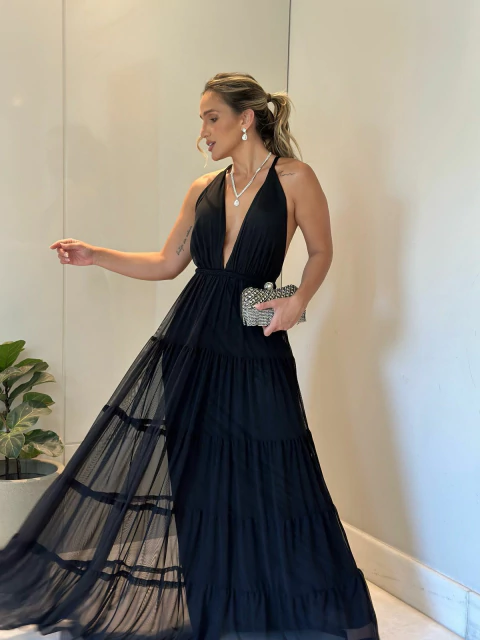 Vestido Longo Amanda Tule : Encanto Poético para Noites Inesquecíveis