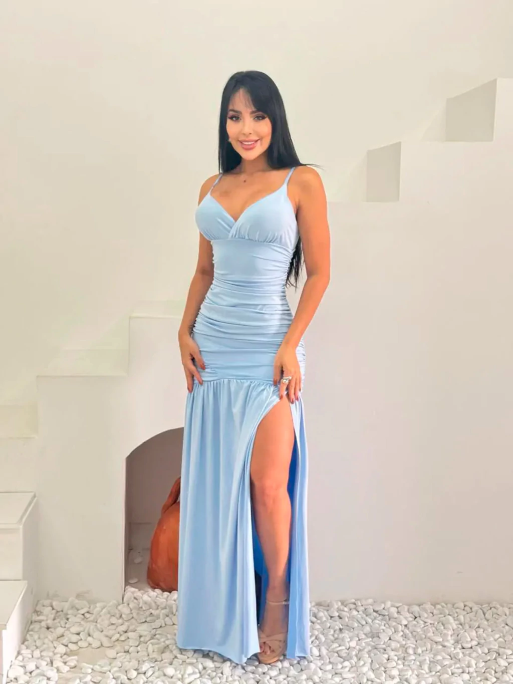 3. Corte Sereia - Silhueta Deslumbrante: O corte sereia do Vestido Longo Luana abraça as curvas, criando uma silhueta deslumbrante que exala confiança e charme.