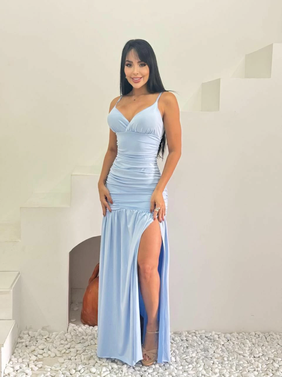 O Vestido Longo Luana é uma expressão sublime de elegância, projetado para a mulher contemporânea que busca uma peça que vá além do simples vestir, proporcionando uma experiência de moda memorável.