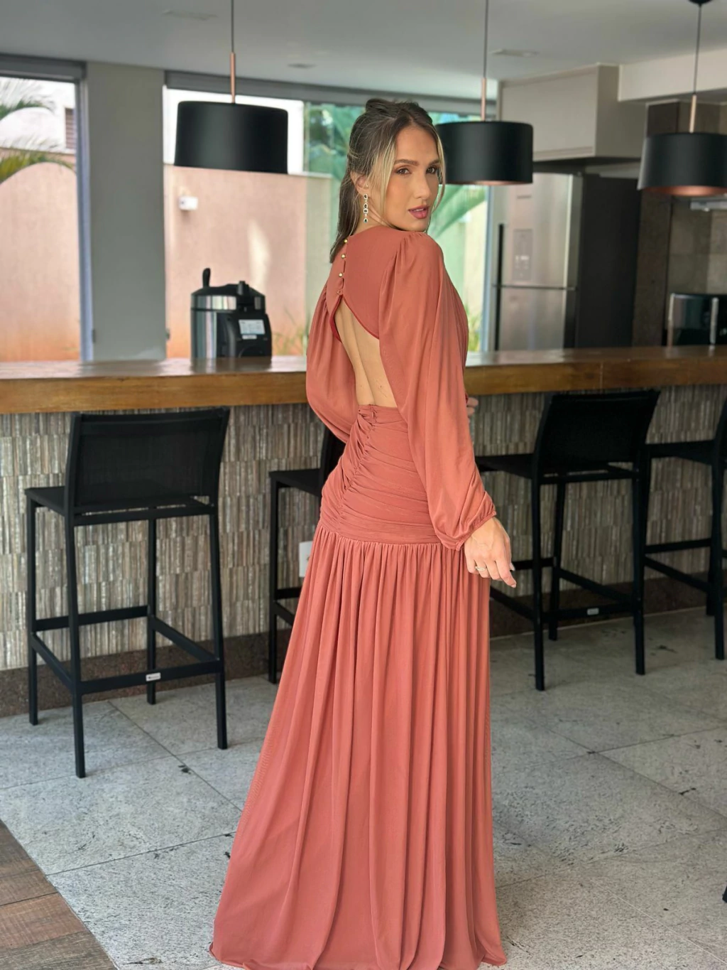 O Vestido Longo Maysa é a personificação da sutil elegância, projetado para mulheres contemporâneas que buscam peças que equilibrem estilo, conforto e um toque de sofisticação.