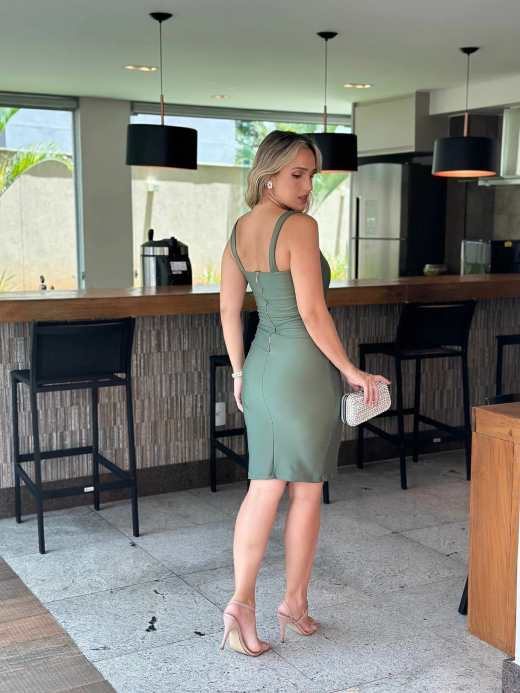 Sofisticação com um toque de modernidade. O Vestido Ana Oliva tem modelagem midi e é feito em tecido Prada, que proporciona estrutura e conforto. O tom oliva garante um visual elegante e contemporâneo.